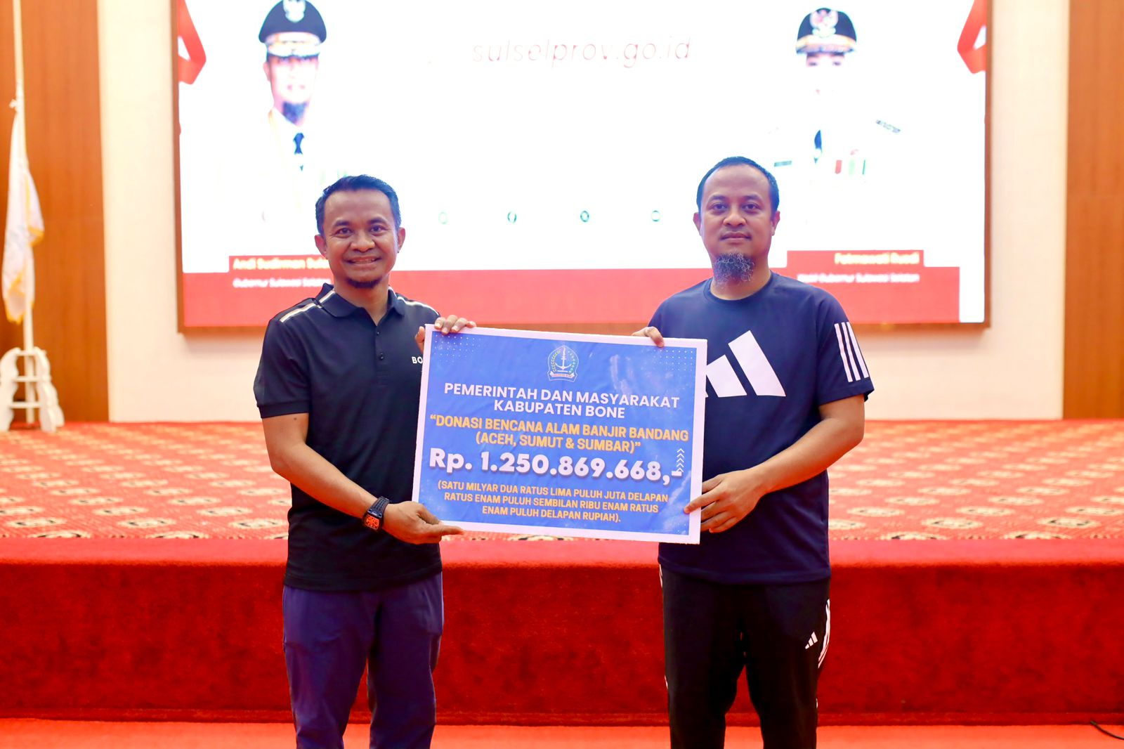 Pemkab Bone Serahkan Donasi Kemanusiaan ke Pemprov Sulsel, Rp1,2 Miliar Bantu Korban Bencana Sumatera